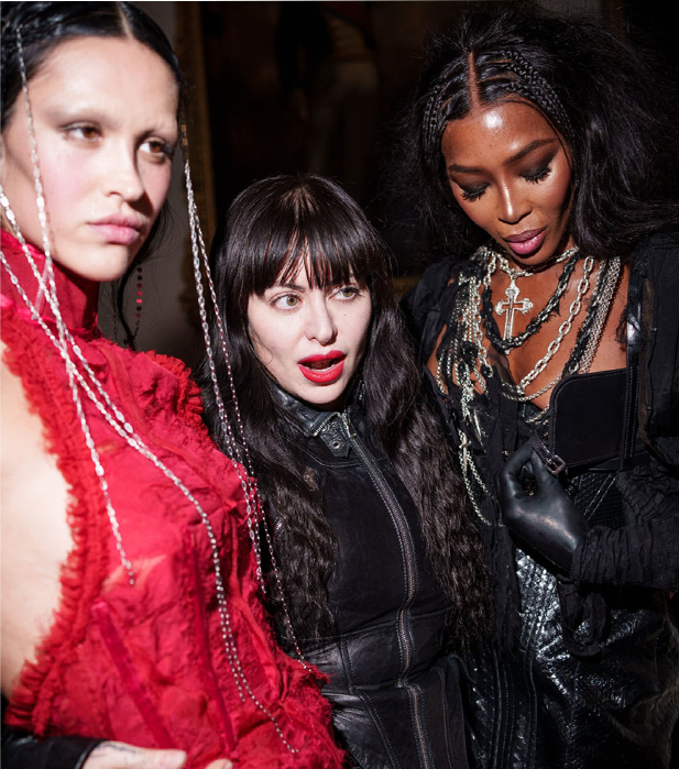 Naomi Campbell dramatik bir ceket atışıyla podyuma damgasını vururken; Amelia Gray ve Tish Weinstock ilham perisi gibi koleksiyonun büyüsünü sahneye taşıdı.